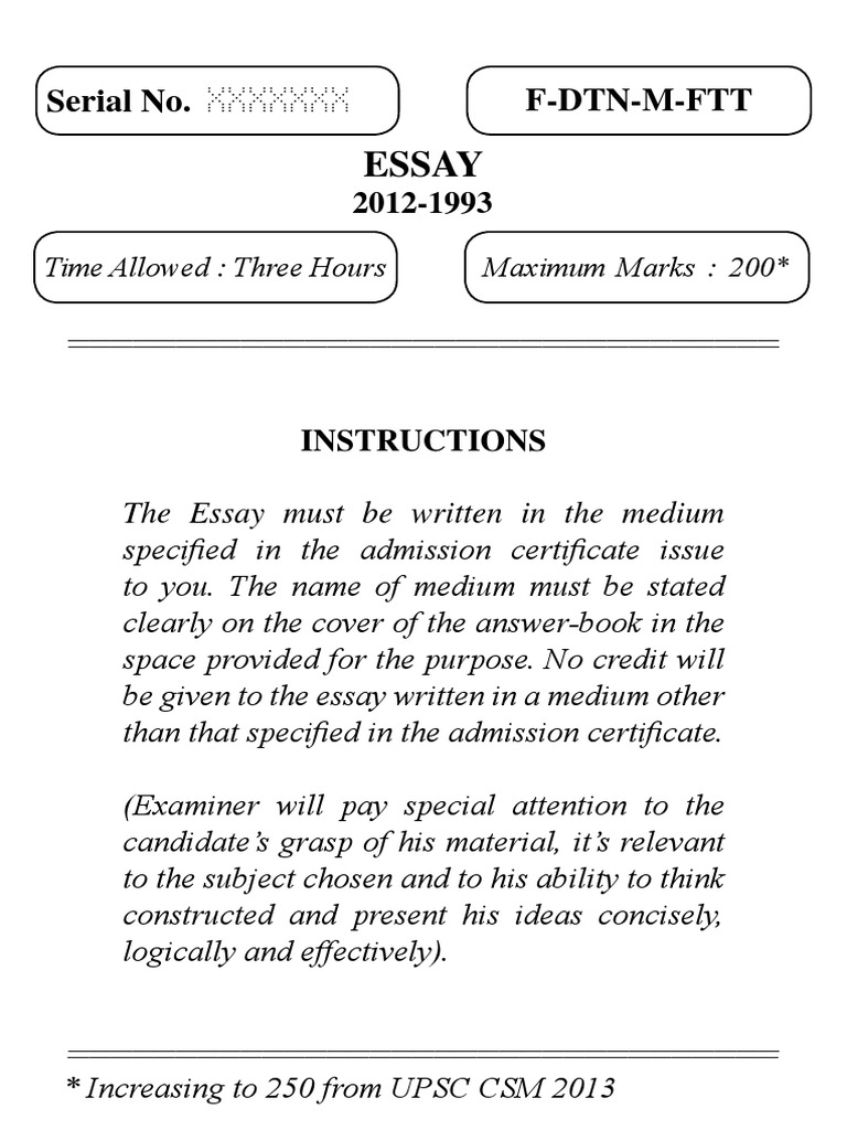 The candidate should relate the essay with for Historical, Geographical, Economical, Social, Environmental and other important dimensions. The candidates can civil general the what, why, how, where and the likes in the essay to explain it in a comprehensive way. The conclusion should always be a on a futuristic and academy service Method of Writing Essay Paper for civil services: After deciding the topic 1. Start brain stroming 2. Write down all the ideas that you about the topic. 3. Do not classify or systematise your points at this stage. 4. Put them on paper randomly as they flow in. 5. Later, arrange the ideas in a logical and sequential manner. 6 Essay for UPSC PDF Free Download. Essay book PDF for UPSC Civil Services Mains Exams in Hindi and English for Free Download. A collections of books includes best and selected Essay, Last 7 years IAS/IPS Mains Solved Paper, for Hindi Compulsory Paper from reputed coaching Institutes and Publishers